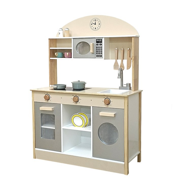 لکڑی کے کھیل کے باورچی خانے کے ساتھ بچوں کا کھلونا کھانا پکانا سیٹ
